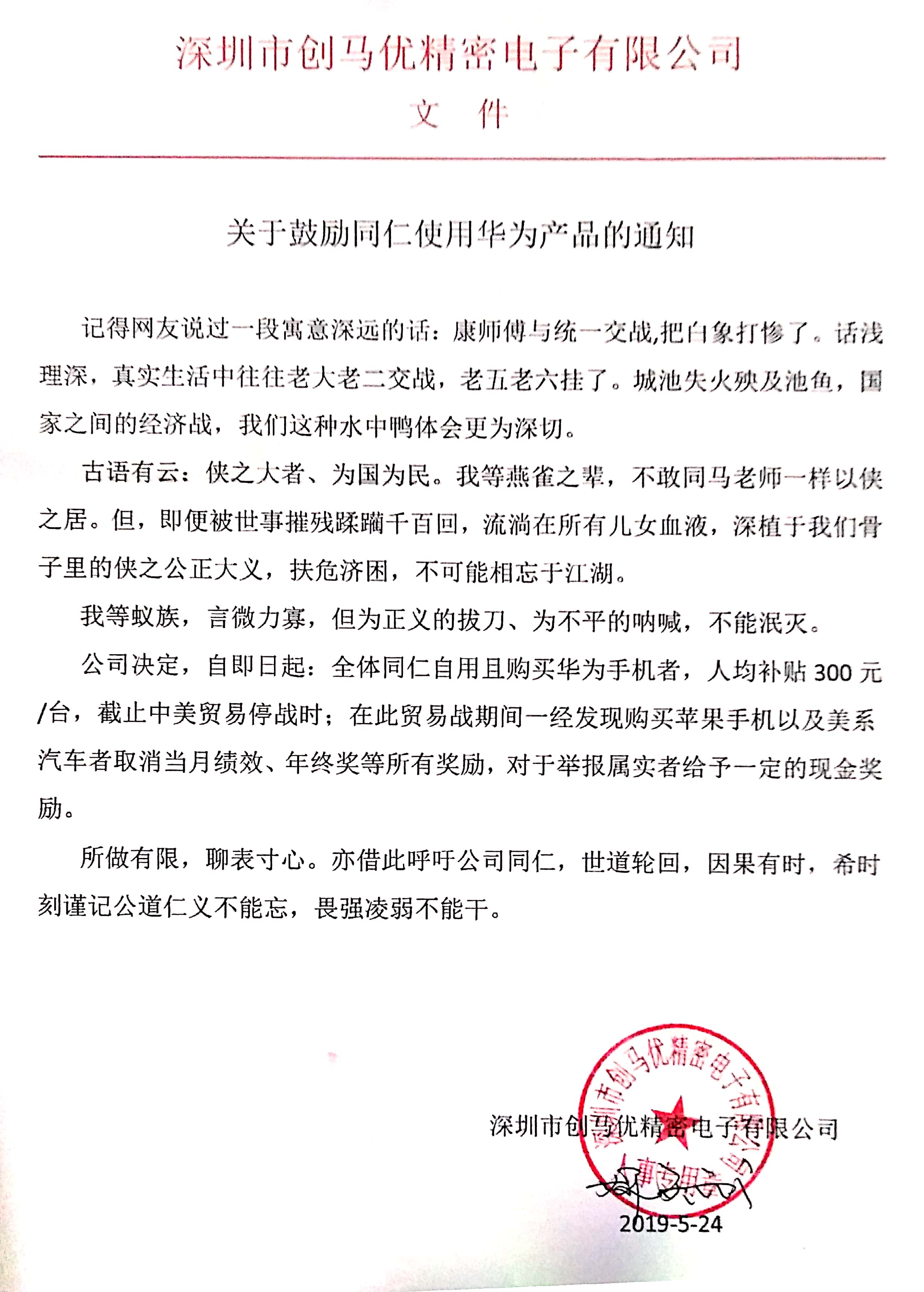 / 關(guān)于鼓勵同仁使用華為產(chǎn)品的通知