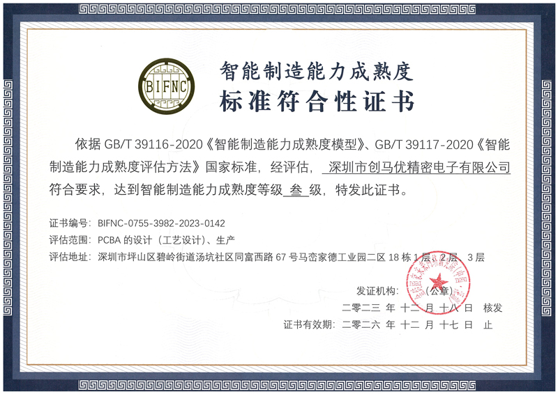 祝賀公司2023年12月18日通過智能制造能力成熟度等級(jí)叁級(jí)認(rèn)證
